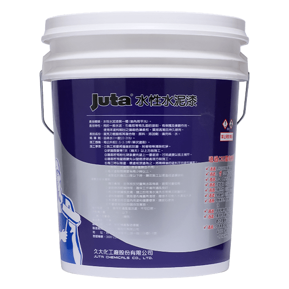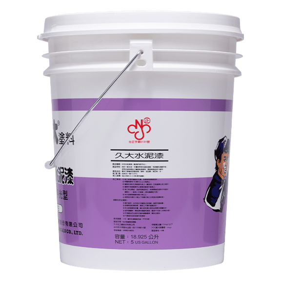 由耐水、耐鹼性非常優異之水溶性特殊樹脂為主要成份,配合特殊顏料及添加劑精製而成之平光型水性水泥漆。